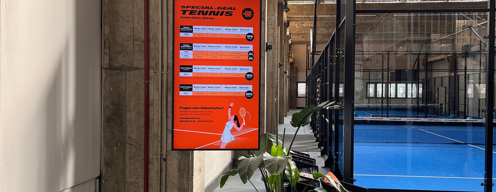 Wir haben mehr als 10+ Sportanlagen mit unserer, standortübergreifenden Signagelösung ausgestattet. Ob Turniere, Aktionen oder Informationen für Spielende, die Inhalte erscheinen genau dort, wo sie gebraucht werden. Und weil bei Padelta Bewegung auch mal Pause braucht, gibt’s an mehreren Orten gleich noch ein Upgrade fürs Entertainment: PlayStation 5 Konsolen direkt in der Lounge.